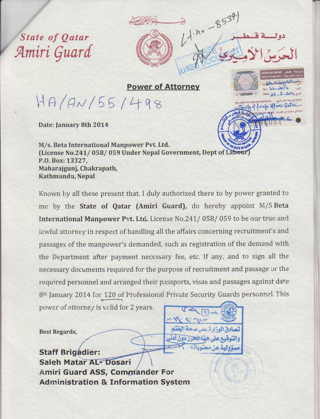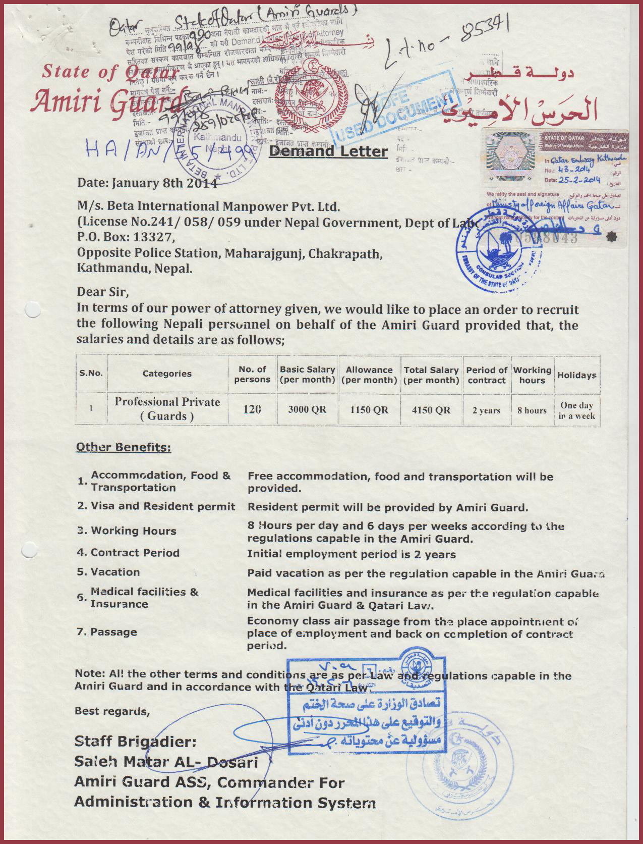Salesman-20, Qrs. 1500/- ... Light Duty Driver / Heavy Duty Driver - 25, Qrs. 1600/- ... Nepali Light Drivers:100-Dhs. 1262/- ... Sample of Five Attested Legal Documents These above Documents must be attested from foreign affairs , chamber of commerce and Nepal Embassy of Requirement country